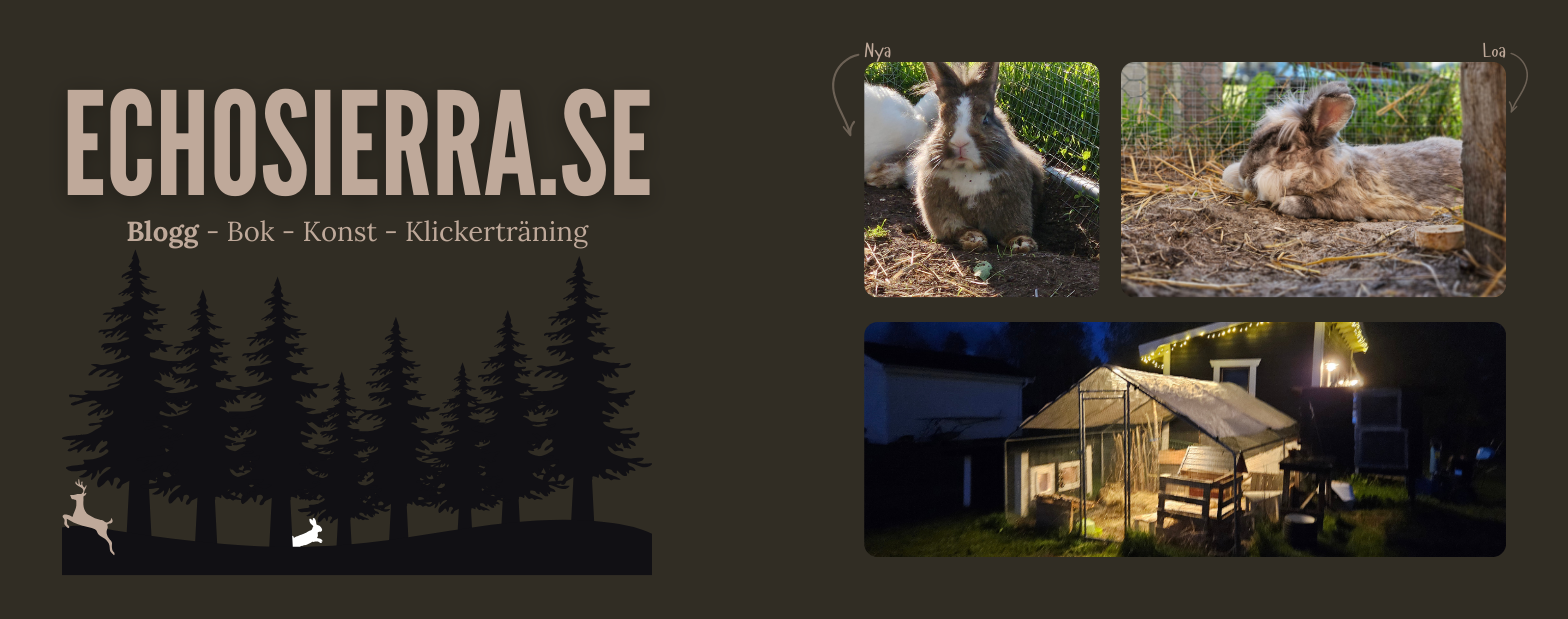 Det är så roligt att observera dem. Har redan börjat se lite personlighetsdrag. Gunhild skakar av sig obehag snabbt och kommer fram och nosar. Nya går alltid in i buren en stund och lugnar ner sig. Nya är snabb och nyfiken men försiktig. Gunhild fläker gärna ut sig och vilar med bakbenen ut i sidan, hon verkar mer avslappnad. Båda kommer när man skakar på pelletsmåttet. Gunhild lever efter mottot ”Störst går först” vid mat och knuffar undan Nya (som givetvis får en egen matskål). Det är därför jag tjatar om att hela tiden observera sina djur. Bara titta hur dom är, vad dom gör, hur dom undersöker och tar sig an världen. Det säger väldigt mycket och vi kan anpassa vårt sätt att vara beroende på deras personlighet.